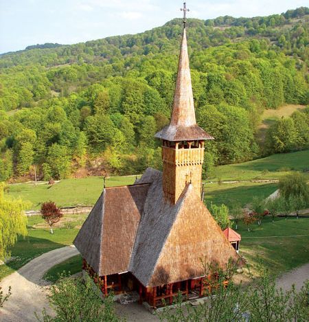 Ridicată pe la anul 1721 de către comunitatea greco-catolică a satului Șurdești și construită din lemn de stejar sub îndrumarea meșterului dulgher Macarie, biserica este renumită ca realizare arhitecturală. Înălțimea remarcabilă a turlei, proporțiile armonioase ale edificiului și pictura interioară îi conferă titlul de ”Catedrala bisericilor de lemn”.